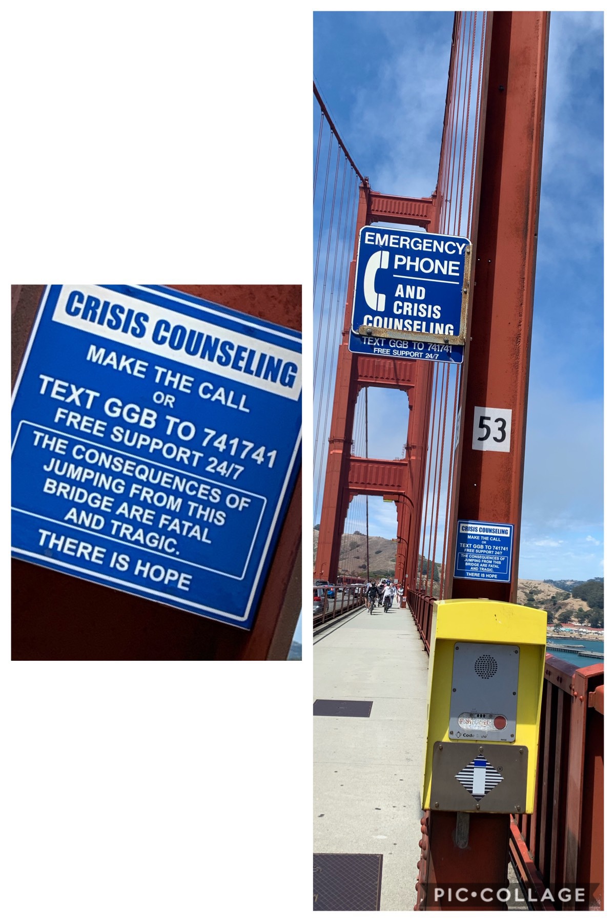 Golden Gate Bridge with so many of these signs. A place known for suicides. San Francisco and it’s surrounding is such a beautiful place .Full of tourists. All so happy and cheerful but then you witness these signs.