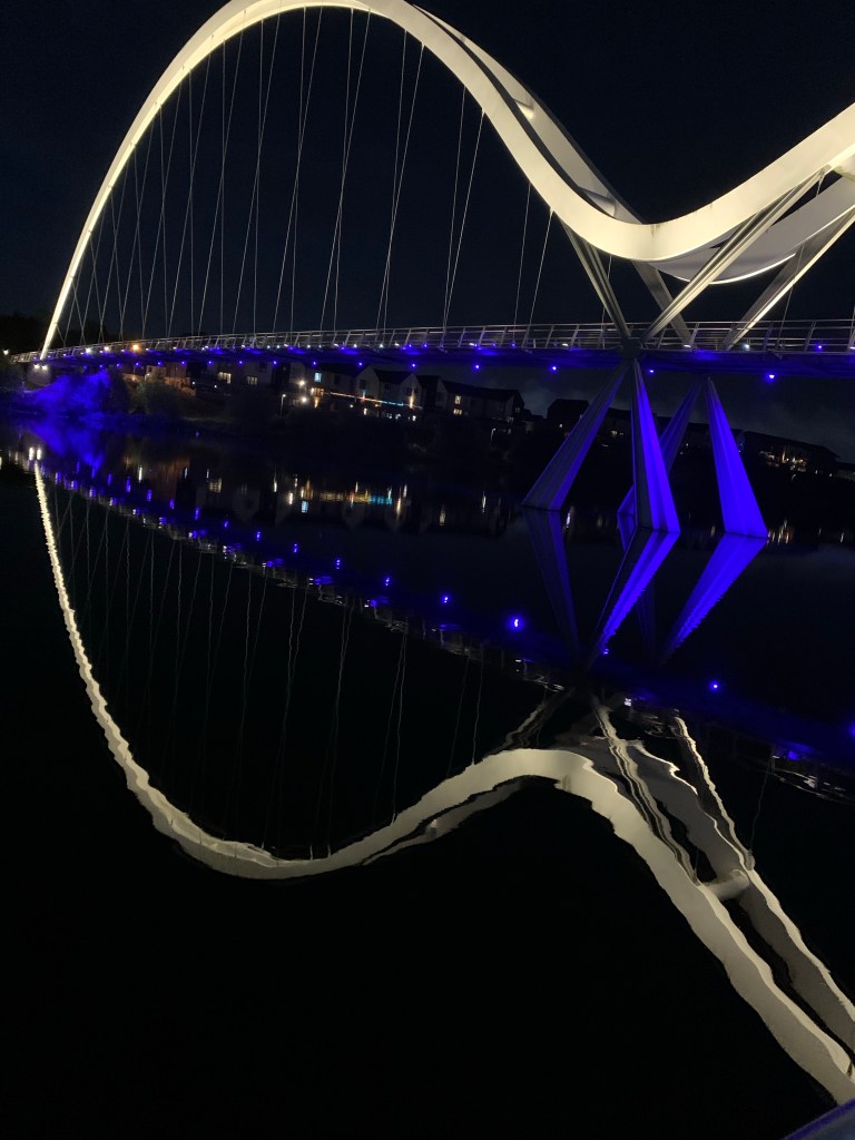 This is one of our favourite walks at night, Infinity Bridge in Stockton certainly captures the imagination in many different ways. It has great views around it of the area especially the Cleveland Hills. Be it night or sunset every minute of the walk is awesome. Rapturous moments bring a lot of happiness.